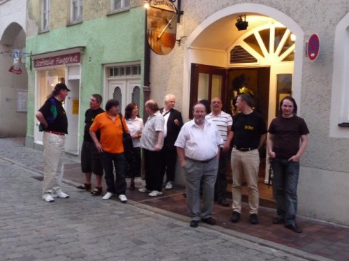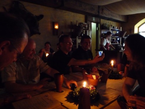 | Hungrig sind wir ins Anno 1475 gekommen - und haben dort dann vorzüglich in wirklich mittelalterlichem Ambiente gespeist & sehr gutes Bier aus richtig coolen Tonkrügen getrunken! Hajo hatte auch diesemal ein persönliches Geschenk für jeden mit nach Landshut gebracht - die Exposes der 4 Gisol Sonderbände! :-) Bei Speis und Trank ist die Zeit ist infolge wirklich im Fluge vergangen, und obwohl wir eine kleine Gruppe waren ist das eine oder andere Gespräch dennoch zu kurz gekommen... |
